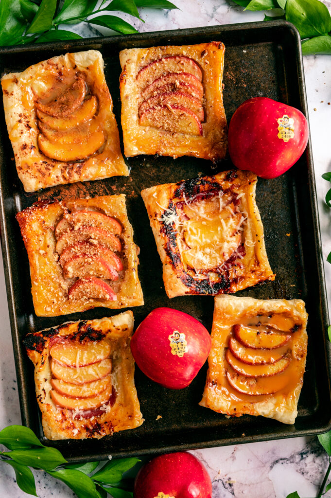 Apples and puff pastry three ways; Apple Brie and Pecan, Apple Bacon and Gruyere, and