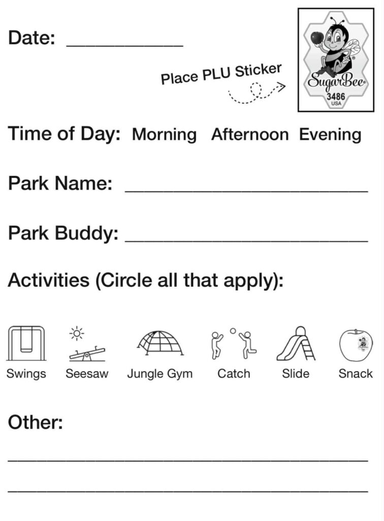 Grab our little “SugarBee Park Passport” book pdf here, and print it out. Visit a new park or playground each week. Bonus points for packing a SugarBee® apple picnic to share – use the special honeycomb-shaped SugarBee PLU stickers as your passport stamps!