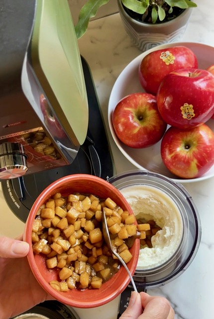 5. Add the Apple Mix-In: Once the apples are cooled, add them to the ice cream and run