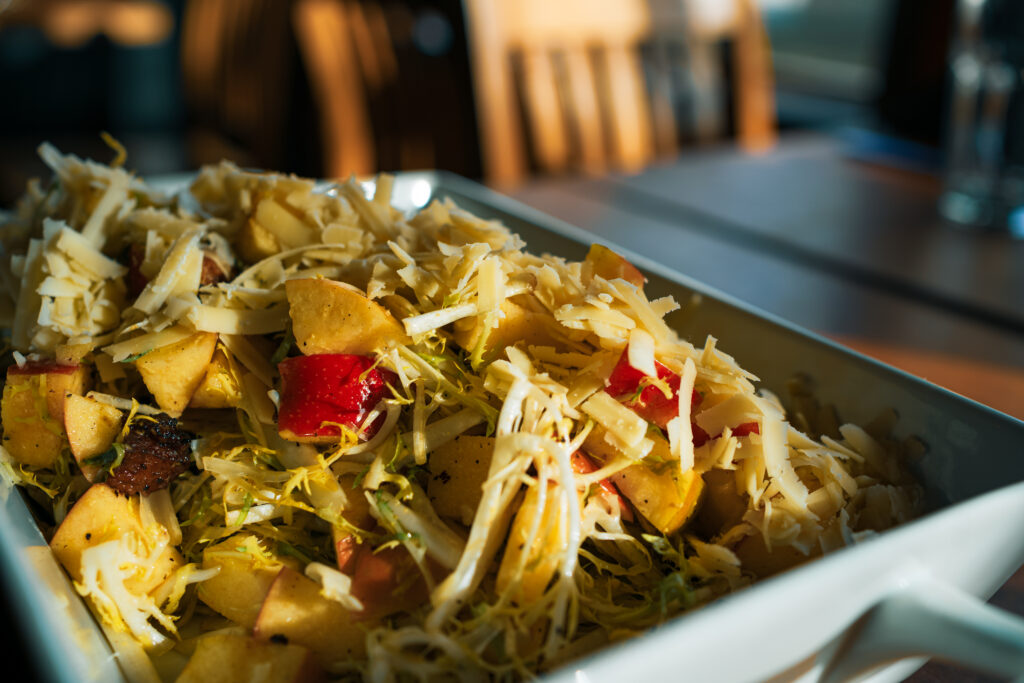 Insalata Invernale Frisée tossed with SugarBee® apples, pork belly croutons, Beecher’s Reserve, Dijon & apple cider vinegar